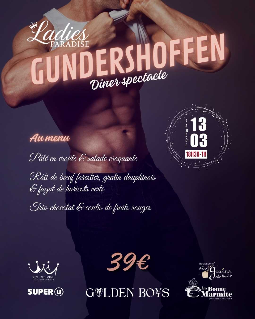 Vivez une soirée festive et décomplexée lors de la Ladies Paradise, un dîner-spectacle dédié à toutes celles — et ceux — qui aiment les hommes. Le samedi 13 mars 2026, de 18h30 à 1h, retrouvez-nous à la salle polyvalente Gundershoffen (67110) pour une expérience conviviale, gourmande et mémorable.
